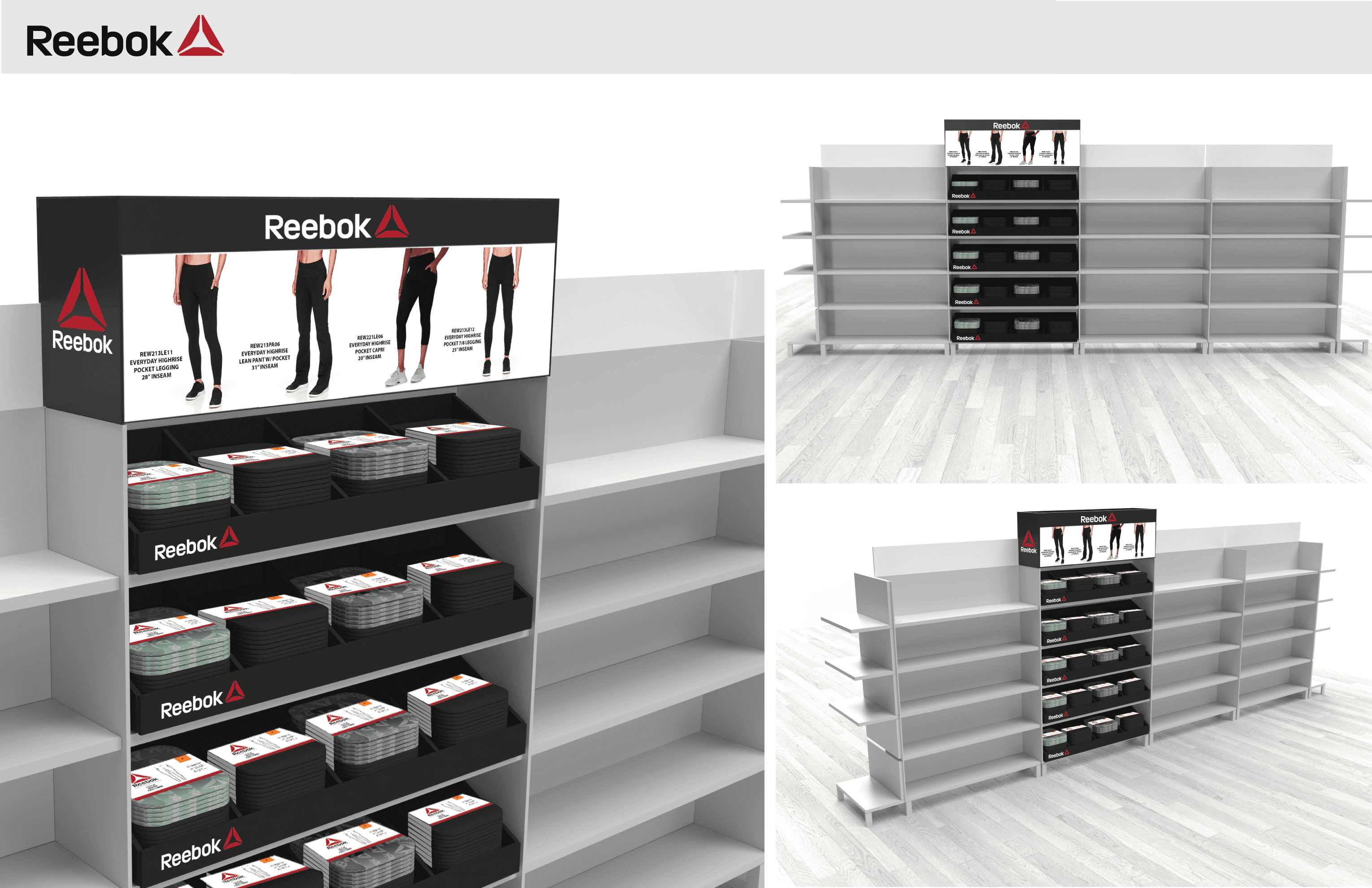 Reebok store concepts that demonstrate how the store layout will be visually merchandised.